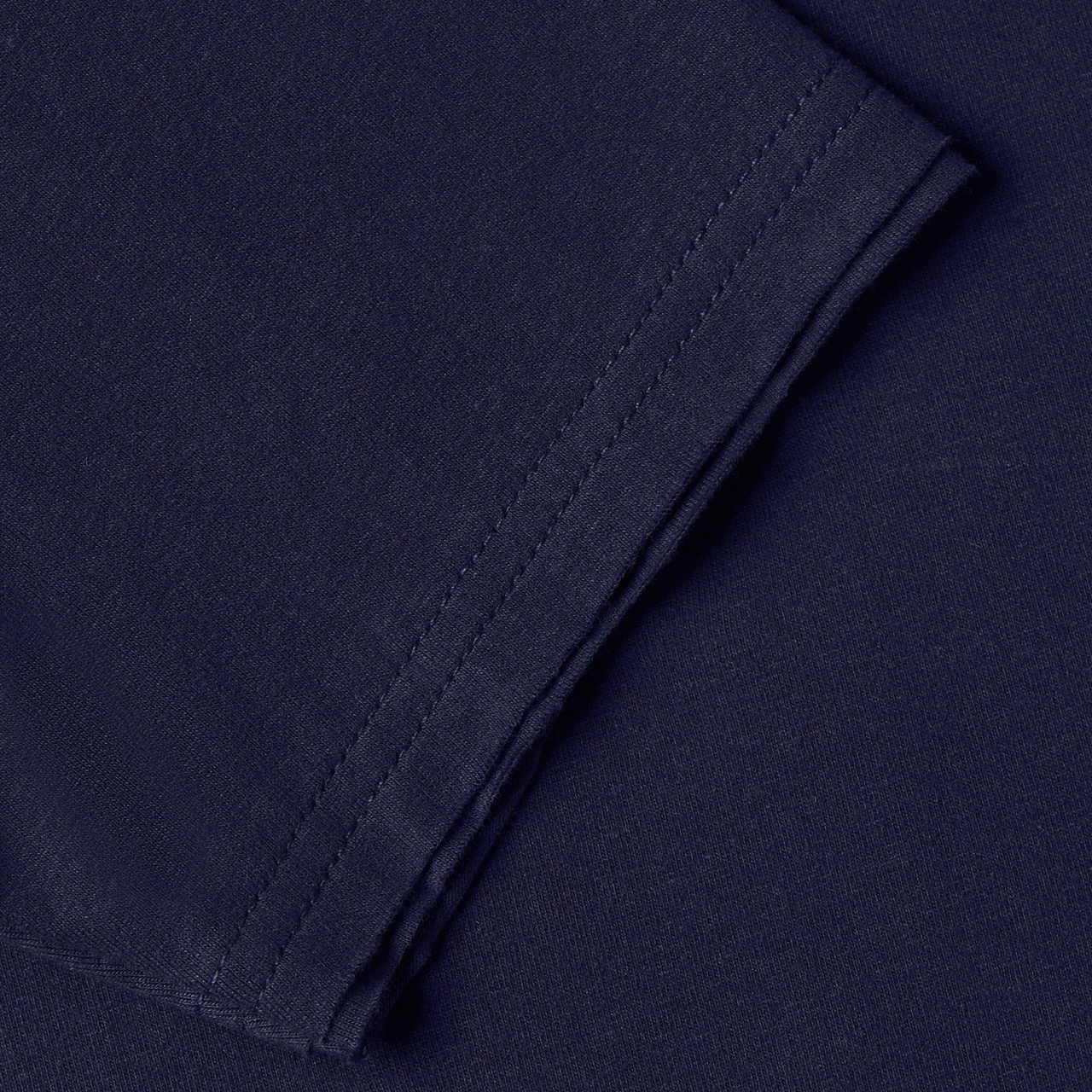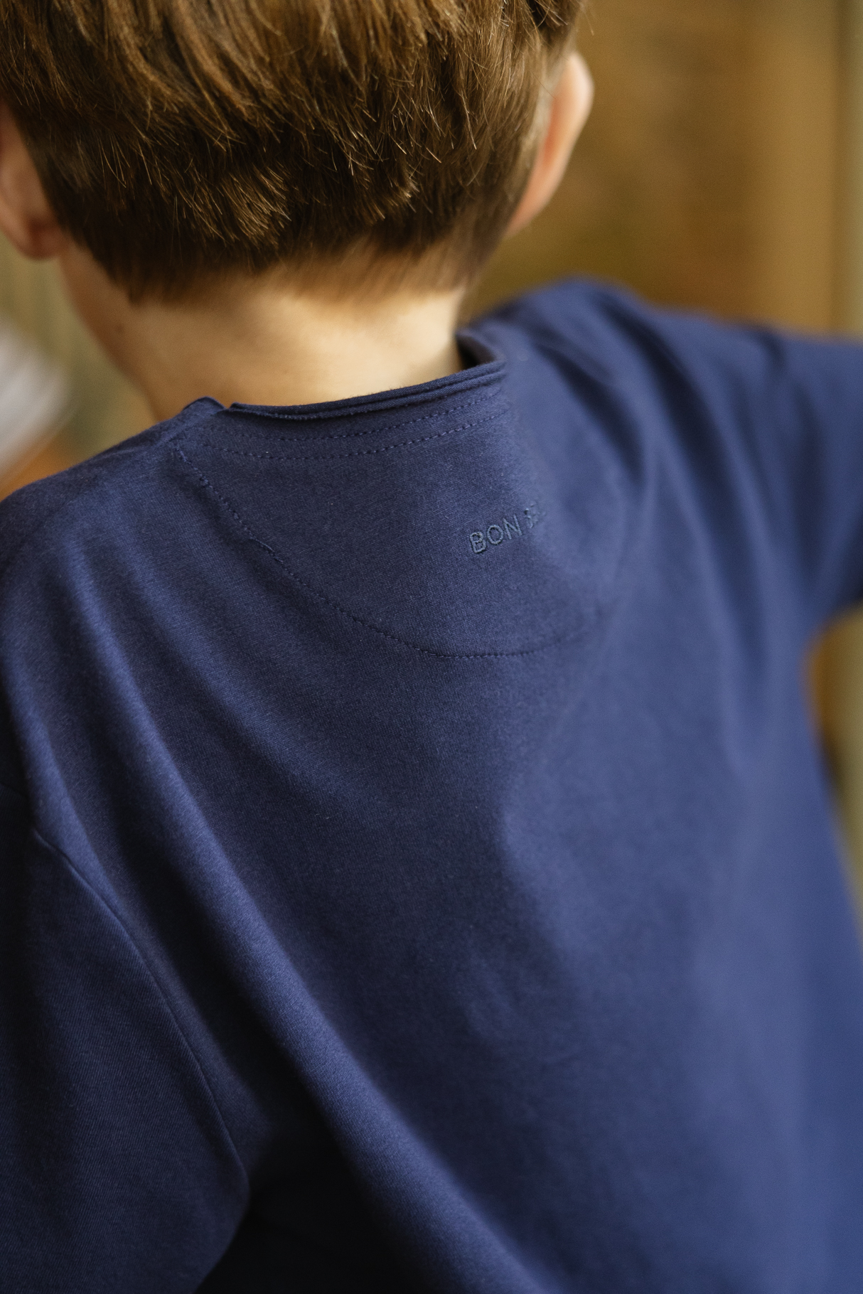 Long-sleeved T-shirt in smooth brushed cotton jersey with a refined, relaxed cut. Rolled edges at the collar and sleeves introduce a casual finish, and Blue minuit brings a quietly timeless tone. A tonal embroidery of our wordmark on the back adds a subtle, elevated touch.
