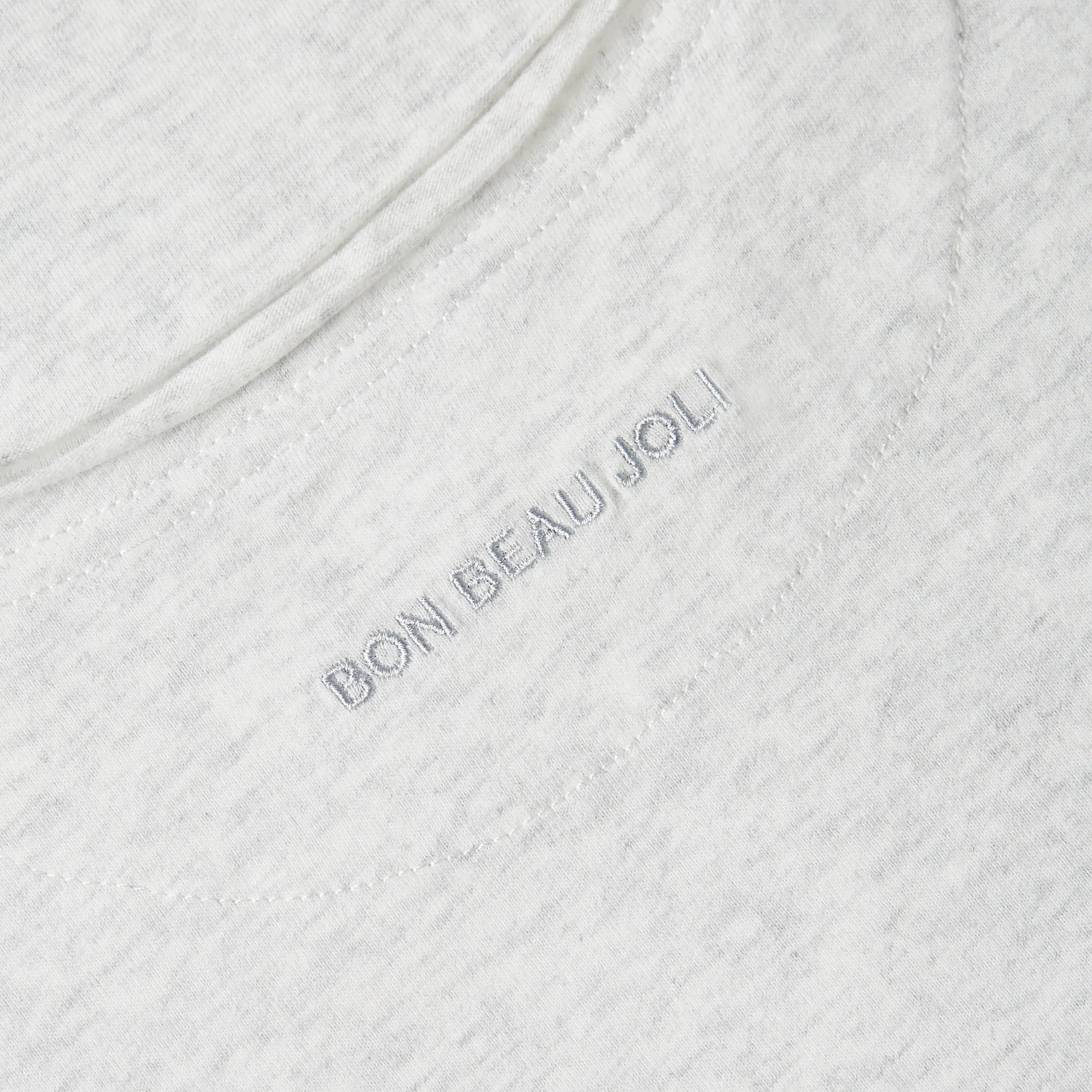 Long-sleeved shirt made from brushed cotton jersey that feels soft yet substantial. The loose fit and rolled edge detailing create a modern comfort, enriched by the calm tone of Grey nuage. A tonal embroidery of our wordmark on the back introduces a refined, understated detail.